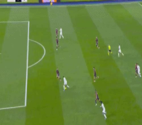 第42分钟,卡马文加后场无厘头停球失误,随后又犯规送出定位球,巴勃罗-马丁内斯操刀主罚,打穿皇马的人墙,直奔球门右上角而去,再度偏出立柱,皇马逃过一劫。